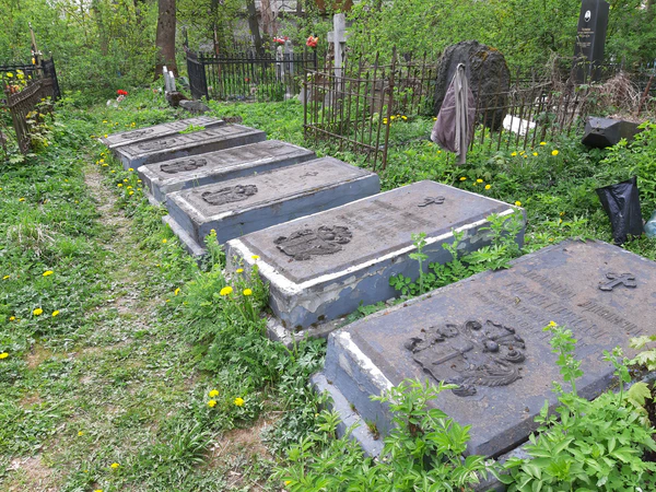 На кладбище много опрокинутых, разбитых надгробий, безымянных крестов и могил, лишенных идентификационных меток. Встречаются старинные памятники со стертыми надписями и новыми табличками[5].