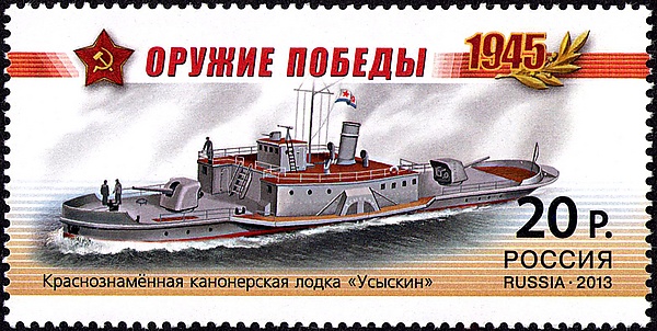 В 2013 году почта России в серии «Оружие Победы» выпустила почтовую марку, посвящённую краснознамённой канонерской лодке. 6 мая 2015 года представлен фильм «Ахтуба — река прифронтовая», посвящённый Северной группе кораблей Волжской военной флотилии, который рассказывал и о канонерской лодке «Усыскин»[24].
