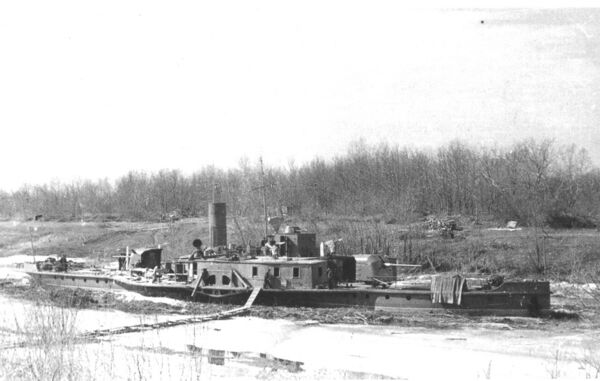 В зиму с 1942 на 1943 год все артиллерийские суда Волжской военной флотилии, кроме канлодок «Усыскин» и «Чапаев», выведены на зимовку и ремонт в район Гурьева и Форт-Шевченко. Два оставшихся корабля вмёрзли в лёд и, замаскированные, продолжили боевые действия против противника[15].
