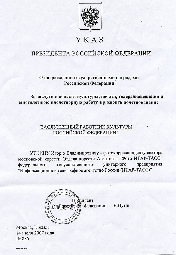 Игорь Владимирович Уткин (15 февраля 1942, Москва — 25 февраля 2009, Москва) — спортивный фотокорреспондент, специальный корреспондент «Фотохроники ТАСС», неоднократный победитель конкурса World Press Photo, обладатель российских и международных премий и наград[1].