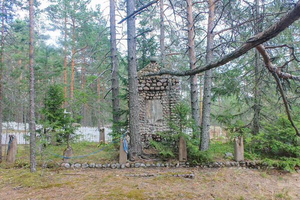 Братская могила в лесу на горе перед въездом в посёлок со стороны г. Питкяранта.
