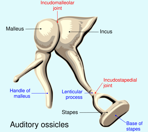 Среднее ухо представляет собой заполненную воздухом полость, в которой находятся три слуховые косточки: молоточек, наковальня и стремечко. Эти косточки усиливают и передают вибрации от барабанной перепонки к овальному окну внутреннего уха. Среднее ухо также соединяется с носоглоткой через евстахиеву трубу, что позволяет уравнивать давление по обе стороны барабанной перепонки.