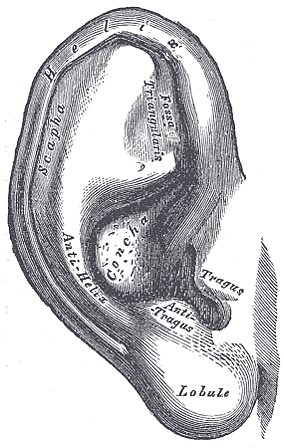 В плане акустики профиль ушной раковины имеют вспомогательную функцию для определения направления, из которого исходит звук. Это относится к различению происхождения звука сзади-спереди или сверху-снизу. За определение, происходит ли звук справа или слева, отвечают другие механизмы.