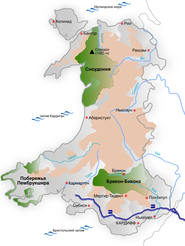 | Крупнейшие города | Кардифф, Суонси, Ньюпорт, Бангор |