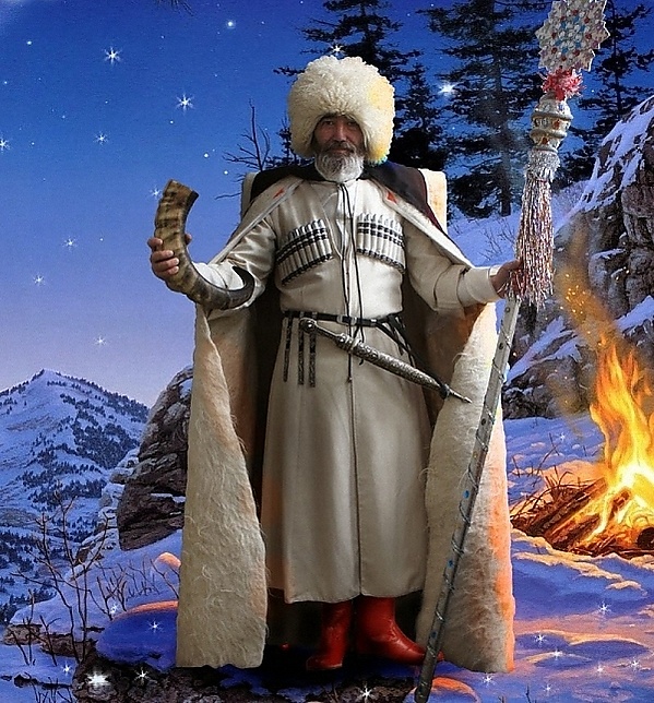 Несмотря на грозный вид кабардино-балкарский Дед Мороз является добрым волшебником. Живёт он в горах и спускается оттуда за неделю до Нового года с мешком подарков. Разносить их ему помогает орёл. Однако одаривает он не всех детей, а лишь тех, кто слушался взрослых, вёл себя вежливо и почтительно по отношению к старшим[1][2][3][4].