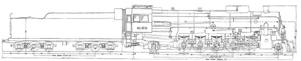- Габариты паровоза (общая и сцепная колёсные базы, высота оси котла над головками рельсов, диаметры бегунковых и поддерживающих колёс).