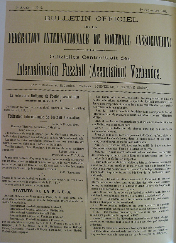 Первые двадцать семь лет ФИФА состояла из нескольких добровольцев, не имела собственной штаб-квартиры, и под её эгидой не проводились матчи. Национальные сборные платили членские взносы в размере 50 французских франков.
