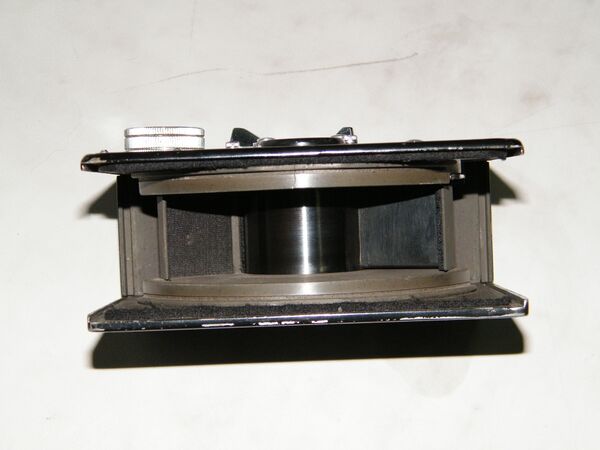 - Тип применяемого фотоматериала — перфорированная фотокиноплёнка шириной 35 мм (фотоплёнка типа 135) в специальных кассетах. Вместо приёмной катушки устанавливается вторая кассета. Обратная перемотка плёнки невозможна.[2] Взвод затвора и перемотка плёнки — раздельные.