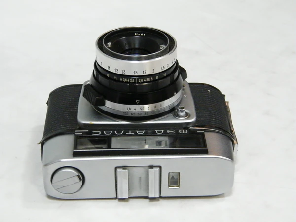 - Курковый взвод затвора и перемотки плёнки. Обратная перемотка рулеточного типа.