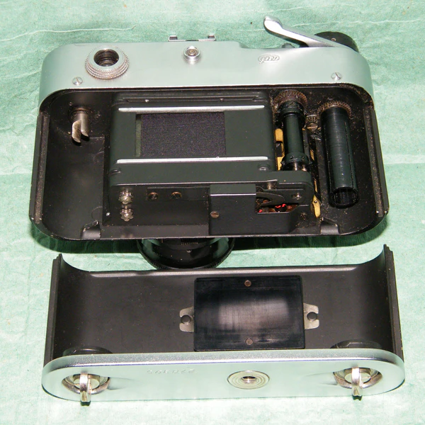 - Счётчик кадров, автоматически сбрасывающийся при снятии задней стенки фотоаппарата. Наличие самосбрасывающегося счётчика кадров увеличило высоту фотоаппаратов (по сравнению с и без того высоким аппаратом «ФЭД-3»).