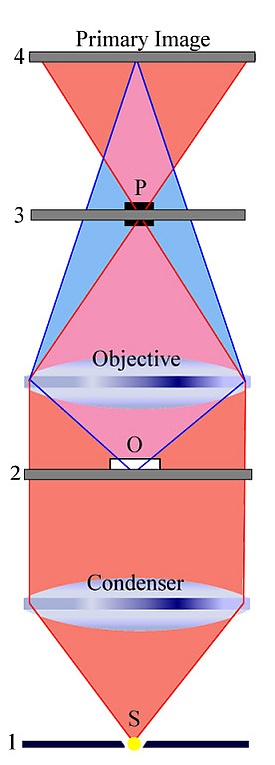 Для получения фазовоконтрастного изображения свет от источника разбивается на два когерентных световых луча, один из них называют опорным, другой предметным, которые проходят разные оптические пути. Микроскоп юстируют таким образом, чтобы в фокальной плоскости, где формируется изображение, интерференция между этими двумя лучами гасила бы их.