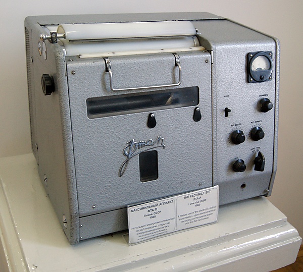 С 1920-х годов, благодаря изобретению электронных ламп и усилителей электрических колебаний на их основе, произошёл дальнейший рывок в развитии факсимильной связи. Одной из первых массовых технологий стал фототелеграф, разработанный инженером компании AT&T Гербертом И. Ивсом при участии Гарри Найквиста. Аппарат представлен публике 19 мая 1924 года, когда из Кливленда в Нью-Йорк были переданы 15 фотографий, предназначенных для ежедневных газет. В фототелеграфе приём изображения осуществлялся на светочувствительный фотоматериал, после проявления которого получалась фототелеграмма[11].