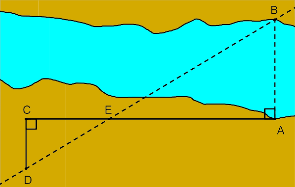 Каким образом Фалес определил расстояние от берега до корабля в море, античные источники умалчивают. Б. Л. Ван дер Варден считает, что именно с этой задачей связано появление теоремы о равенстве треугольников[70]. Задачи о вычислении высоты пирамиды и расстояния до корабля на первый взгляд являются сугубо прикладными. Однако по современным оценкам момент, когда Фалес начал определять эти величины, стал переломным в истории науки. Ведь, если возможно измерить высоту пирамиды и расстояние до находящегося вдали корабля, то следующими вопросами, которые поставит перед собой человечество, станут: «Каково расстояние от Земли до Луны и Солнца?»[72]