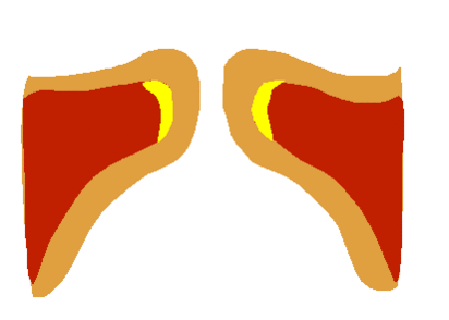 Складки состоят из эластичной и жировой ткани. Снаружи они покрыты гортанной слизистой оболочкой, которая поддерживается изнутри волокнами щитовидно-черпаловидной мышцы. В фальцете вибрируют только крайние мембранозные участки (то есть наиболее удалённые от центра щели между складками). Масса, соответствующая внутренней части щитовидно-черпаловидной мышцы, остаётся неподвижной[1].