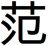 - 范 (значение «образец, стандарт»), соответствует вьетнамской фамилии Фам (вьетн. Phạm, тьы-ном 范).