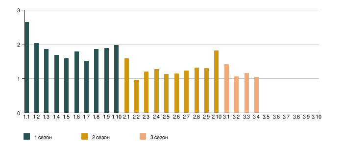 Премьера | Финал | Средняя аудитория (в миллионах) | ||