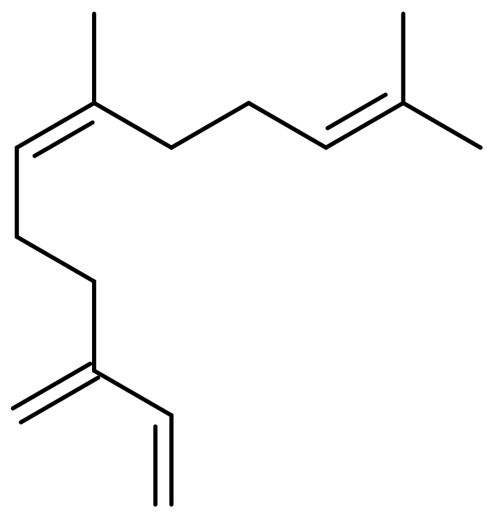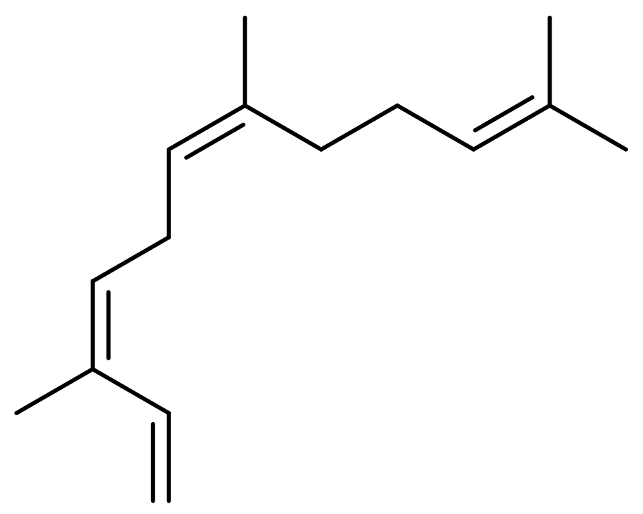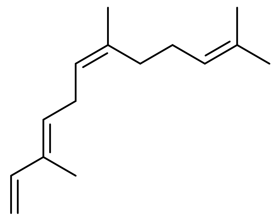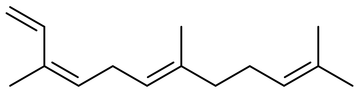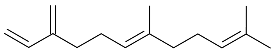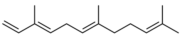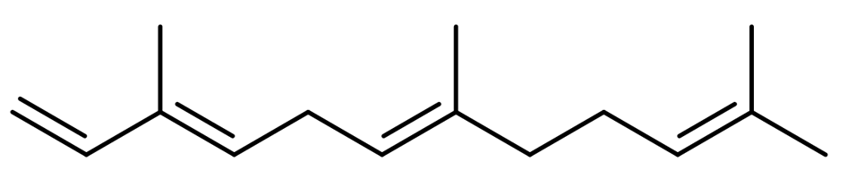 α: 3,7,11-триметил-1,3,6,10-додекатетраен β:7,11-диметил-3-метилен-1,6,10-додекатетраен |