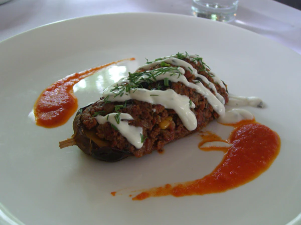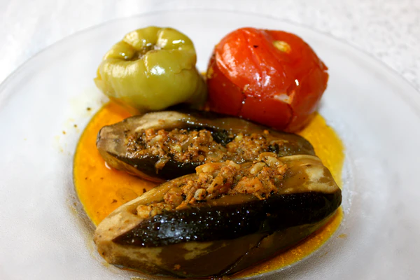 В Турции баклажаны обычно начиняют овощами, рисом или изюмом, но никогда не начиняют мясом. Турецкое блюдо из фаршированных баклажанов называется имам баялды.