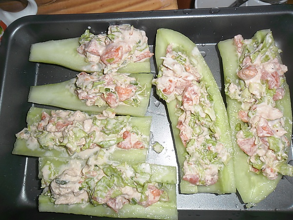 Concombres farcis — французское блюдо (буквально «фаршированные огурцы»), которое часто готовится с кремообразной пастой, иногда с мясным фаршем, и затем подаётся в разрезанном и очищенном сыром огурце или в приготовленном виде[8][9][10].