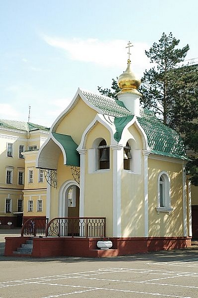В целях увековечивания памяти выпускников старейшего учебного заведения Сибири, погибших в боях за Отечество, в 1997 году принято решение[4] о строительстве на территории Омского ВОКУ им. М. В. Фрунзе часовни — памятника во имя святого Георгия Победоносца. А уже через год — 6 мая 1998 года Митрополитом Омским и Тарским Феодосием было произведено освящение часовни. Оно прошло в торжественной обстановке в присутствии Губернатора Омской области и многочисленных гостей города и области. В часовне-памятнике золотым тиснением запечатлены фамилии тех, кто прославил старинное военно-учебное заведение Сибири — Георгиевских кавалеров, Героев Советского Союза, полных кавалеров ордена Славы, Героев Российской Федерации.