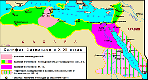 Халифат Фатимидов в годы территориального апогея около 969 года |