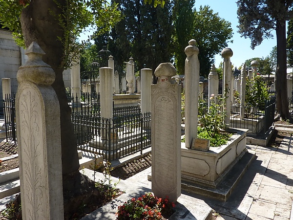 На кладбище, что к юго-востоку от мечети (в направлении к кибле), находятся тюрбе султана Мехмеда II Завоевателя и его жены Гюльбахар Хатун. Оба мавзолея были перестроены после землетрясения. Тюрбе Завоевателя выполнен в стиле барокко, интерьер богато украшен. Гробница Гюльбахар, напротив, отличается простотой и классическими линиями и, возможно, имеет большое сходство с первой постройкой. Кроме того, здесь находится множество могил ведущих государственных лиц, среди них Осман Нури-паша.