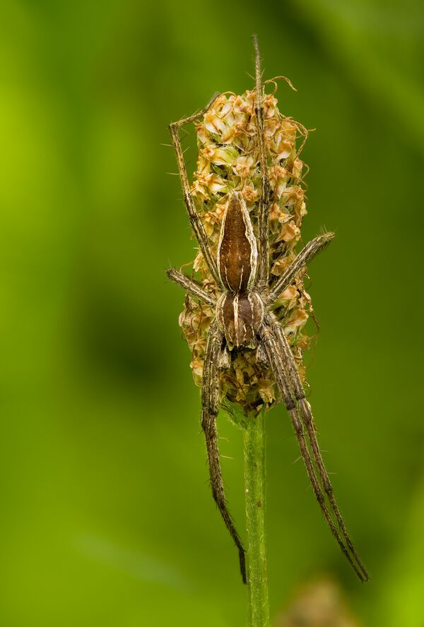 Из пауков (Araneae) встречаются — крестовик обыкновенный (Araneus diadematus)[16], аргиопа Брюнниха (Argiope bruennichi)[16], аргиопа дольчатая (Argiope lobata), южнорусский тарантул (Lycosa singoriensis), пизаура удивительная (Pisaura mirabilis)[16]. Возможна встреча с самым ядовитым животным Волгоградской области — каракуртом (Latrodectus tredecimguttatus). Этот вид не типичен для окрестностей Волгограда. До этих границ его популяция расширяется лишь в экстремально засушливые годы, какими были 2009 и 2010[17]. В окрестностях Волгограда этот вид также облюбовал стихийные свалки, так как здесь легко найти надёжное убежище среди мусора, а гнездо, расположенное в складках одежды, обеспечивает укрытие от непогоды[17].
