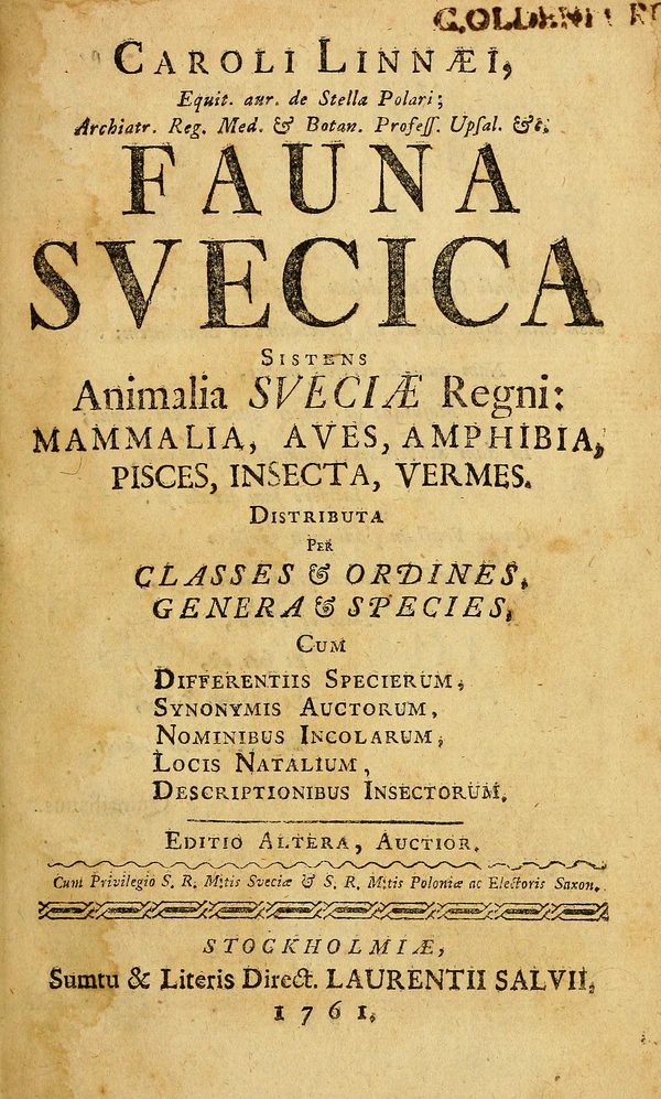 Fauna Svecica, издание 2, 1761.[3]