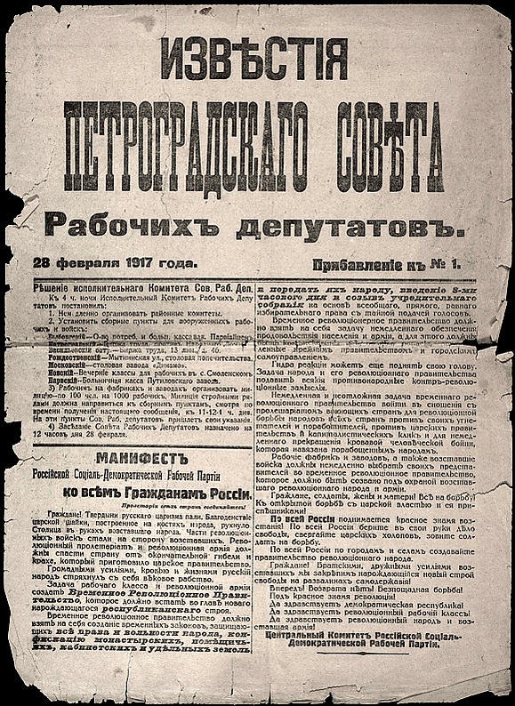 Вслед за Петроградом и Москвой революция постепенно начала распространяться по всей России. 1 (14) марта революционные органы власти были сформированы в Нижнем Новгороде[85]. 2 (15) марта началось восстание солдат 3-го пулемётного полка в Саратове[86], был сформирован Совет рабочих депутатов в Иваново-Вознесенске[87], в Вологде был создан губернский временный комитет во главе с кадетом Кудрявым В. А. (Совет рабочих депутатов был образован только 15 (28) марта).