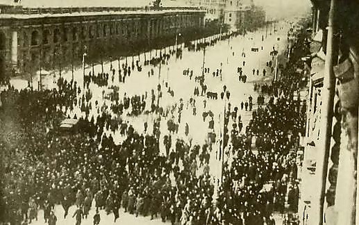 С раннего утра были выставлены военно-полицейские заставы у Большого Охтинского, Литейного, Троицкого, Николаевского мостов. Патрулировались Смольнинская, Воскресенская, Дворцовая, Адмиралтейская набережные. К 10 часам утра к мостам подошли многотысячные колонны демонстрантов с Выборгской, Петроградской сторон, Васильевского острова, устремившиеся в центр города прямо по льду Невы. Бастовало около 305 тыс. человек на 421 предприятии. Демонстрации и митинги в районе Невского проспекта проходили под лозунгами «Долой царя!», «Долой правительство!», «Хлеб, мир, свобода!», «Да здравствует республика!». К демонстрантам присоединялись ремесленники, служащие, интеллигенция, студенчество[36]. Произошли столкновения с полицейскими и кавалеристами. В жандармов бросали ручные гранаты, петарды и бутылки. Были отдельные случаи стрельбы в демонстрантов.