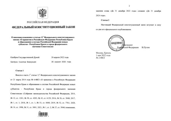 | ч. 1 ст. 137 | принятие в Российскую Федерацию и образование в её составе нового субъекта Российской Федерации |