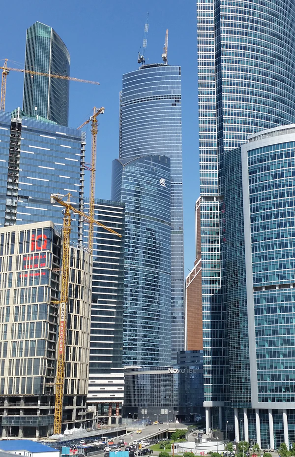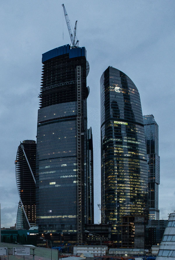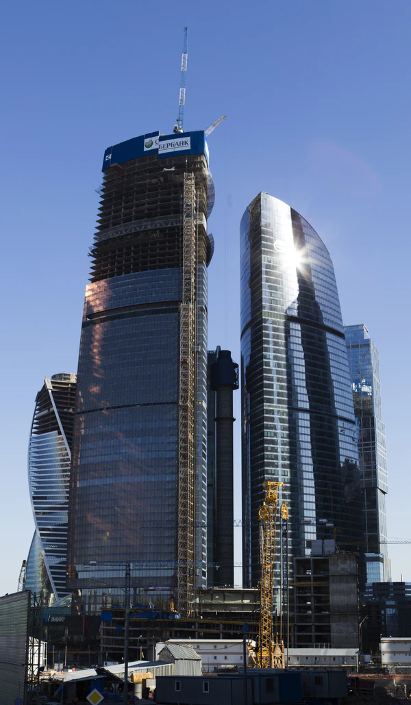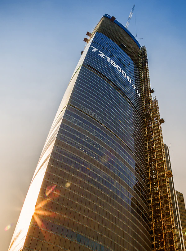 - Башня «Восток» — 97-этажное[3] здание. 25 ноября 2014 года «Башня Федерация» стала самым высоким зданием в России и Европе, когда верхняя отметка строящейся башни «Восток» комплекса «Федерация» достигла 351 метра. Строительство монолитного каркаса завершилось 9 декабря 2014 года. В конце 2015 года закончены инженерные работы и остекление. Строительство было полностью завершено 15 ноября 2017 года. Архитектурная высота комплекса «Башня Федерация» в 2017 году составила 374 метра[4][5]. Международный совет по высотным зданиям и городской среде (CTBUH) признал её самым высоким небоскрёбом Европы, однако после постройки в Санкт-Петербурге башни «Лахта центр» (462 метра) «Башня Федерация» стала второй по высоте[6].