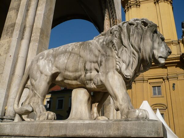 - памятник баварской армии (эскиз скульптора Фердинанда фон Миллера, 1892). Известна мюнхенская шутка, что там изображён истинный баварец: «Знамя отдам — женщину никогда!»;