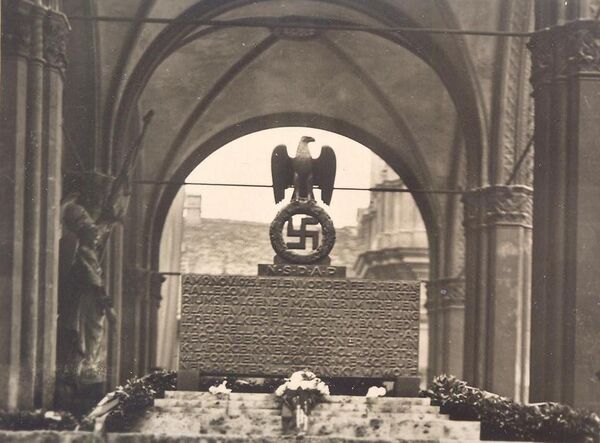 Воскресным утром 9 ноября 1923 года Адольф Гитлер вместе со своими соратниками выступил из пивного зала Бюргербройкеллер к Фельдхернхалле, где произошли столкновения с баварской полицией. Здесь марш путчистов был остановлен.