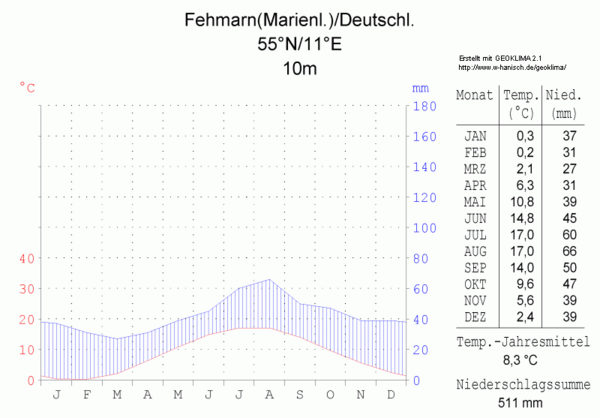 С северной стороны остров омывается водами пролива Фемарн-Бельт.