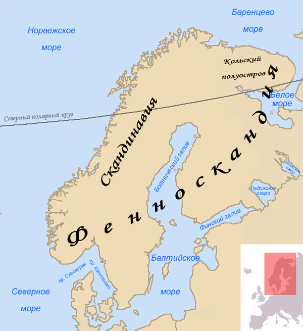 Фенноска́ндия (фин. Fennoskandia, швед. Fennoskandien, норв. Fennoskandia) — физико-географическая страна на северо-западе Европы общей площадью около 1,88 млн км² (включая площадь моря; площадь суши — свыше 1,5 млн км²). Выделена финским геологом Вильгельмом Рамзаем в 1898 году в составе Норвегии, Швеции, Финляндии и западной части бывших Олонецкой и Архангельской губерний России. Названа по преобладающему на территории историческому расселению скандинавов и финно-угорских народов[1].
