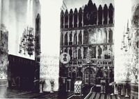 В верхнем храме на солее справа находилось царское место, с установленными креслами; рядом — дверь соединявшая храм с верхней царской комнатой и «царской» лестницей, соединяющей оба храма. Там же, справа от алтаря, располагалось молельня императрицы[3].