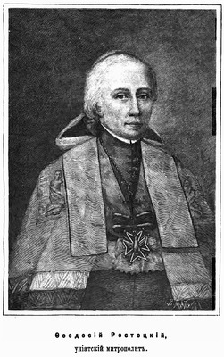 Униатский митрополит Феодосий Ростоцкий — первый из униатских владык, кто получил достоинство сенатора и место (с 1790 года) в сенате Речи Посполитой, чего объединённая Церковь безуспешно добивалась для своих иерархов в течение двух веков. В 1792 году поддержал Тарговицкую конфедерацию. После третьего раздела Речи Посполитой (1795), ради ограничения и контроля деятельности униатской церкви, российская императрица Екатерина II задержала митрополита Ростоцкого в Петербурге, откуда он, отделенный от своей митрополии, был связан с паствой только дипломатическим путём.