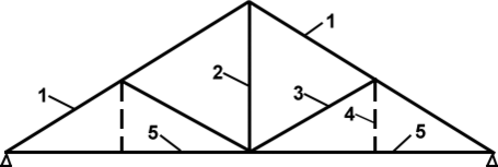 Расчётные длины элементов ферм (поясов, стоек и раскосов) принимается равной длине элемента, умноженной на коэффициент приведения длины μ[23]: