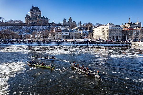 В конце января — середине февраля в Квебеке ежегодно проходит Зимний карнавал (фр. Carnaval de Québec). Помимо парадов и других культурных мероприятий, в его программу входят спортивные события: гонки на каноэ по замёрзшей реке Святого Лаврентия[17] и традиционные игры, такие как катание на тобогганах и «снежная ванна»[17].
