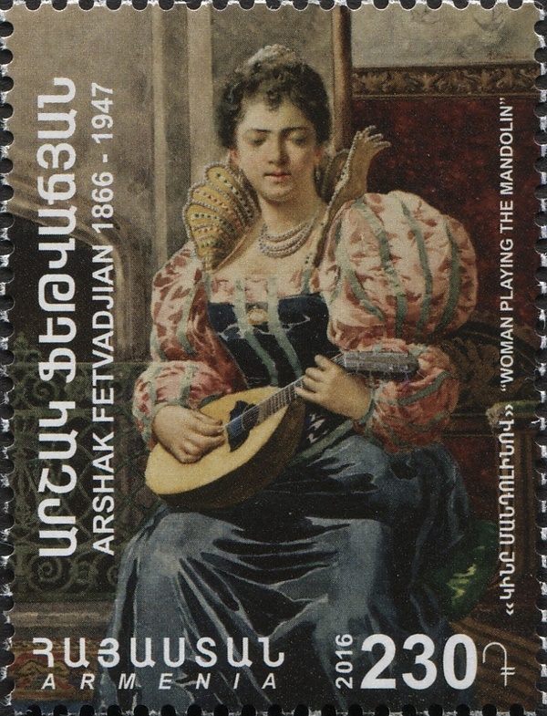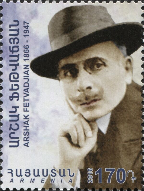 В мае 1918 года была провозглашена Первая Республика Армения (ДРА). Через год руководство республики поручило Аршаку Фетваджяну подготовить образцы денег и знаков почтовой оплаты ДРА. Заказ на печатание банкнот выполнила лондонская банкнотопечатающая фирма «Ватерлоо и сыновья», а серию из 10 стандартных марок оригинальных рисунков изготовила в ноябре 1920 года парижская типография Шаспо[5]. Однако эти банкноты и марки не поступили в обращение, поскольку к моменту их выхода правительство партии Дашнакцутюн было свергнуто, а Армения провозглашена Социалистической Советской Республикой. В дальнейшем марки Фетваджяна с номиналами в 1, 3, 5, 10 и 15 рублей с чёрной надпечаткой герба ССР Армении использовались как гербовые марки.