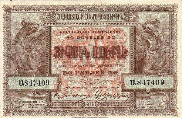 Банкноты, созданные А. Фетваджяном для ДРА (1919)