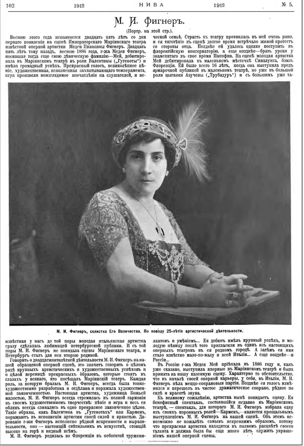 До 1912 года Медея Мей-Фигнер была солисткой Мариинского театра в Санкт-Петербурге.