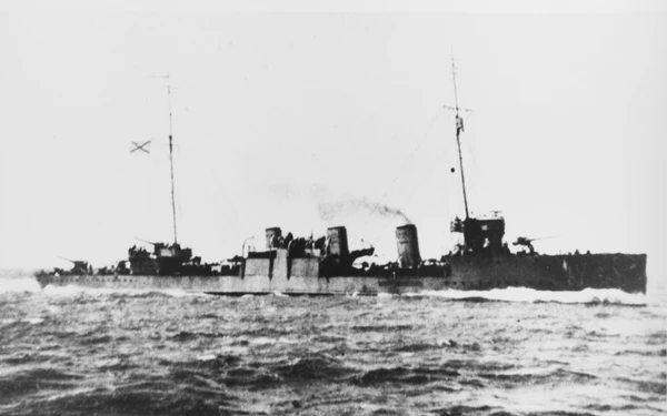 3 (16) декабря 1917 года эсминец поднял красный флаг. 12 (25) декабря 1917 года на борту эсминца, находившегося в море, матрос-кочегар Коваленко убил выстрелом в спину мичмана Скородинского за то, что мичман сделал кочегару замечание за нерадивую службу. Это убийство послужило началом отсчёта жертв красного террора в Крыму. 15 (28) декабря 1917 года экипаж эсминца расстрелял всех своих офицеров на Малаховом кургане[3].