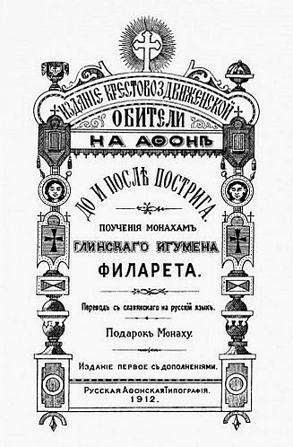 К трудам Филарета должны быть отнесены и 4 устава, составленные им по правилам общежития Афонской горы, для женских обителей Курской, Оренбургской и Екатеринбургской епархий, а также и — «Пространное поучение к новопостриженному монаху», напечатанное в 1824 году и разосланное по всем епархиям Русской церкви[2]. Игумен Филарет оставил такие аскетические наставления монашествующим как, например, «До и после пострига»[4], «О должности духовника, служащего инокиням». Его трудами по устным преданиям была составлена «История Глинской Рождества Богородицы мужской пустыни».[5]