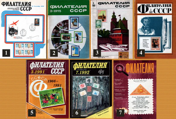 - ↑ Пояснения к нумерации обложек (от 1 до 7) на иллюстрации даны в статье Филателия (журнал).