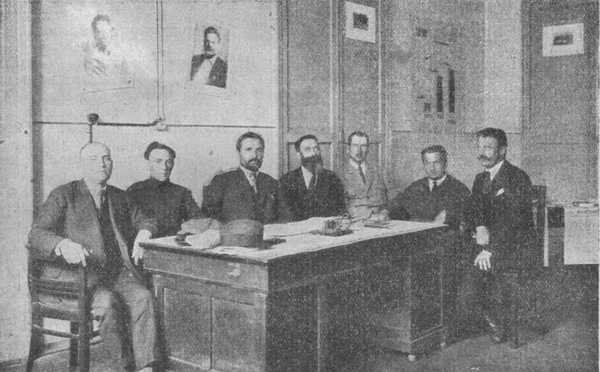 Первое заседание предварительного совещания по организации международного филателистического общества коллекционеров-трудящихся — Филателистического интернационала состоялось 22 июня 1924 года в помещении государственной Организации Уполномоченного по филателии и бонам (Москва, 1-я Тверская-Ямская улица, д. 3). На заседании присутствовали 28 участников с решающим голосом и 22 участника на правах гостей. Совещание открыл Ф. Г. Чучин (1883—1942; репрессирован)[6], предложив избрать президиум. В состав президиума совещания вошли семь человек, представленные Правлением Всероссийского общества филателистов: Ф. Чучин, Б. Памфилов, Н. Бруггер (СССР), Гутман (Эстония), Казаков (Франция) и Морис Шерман (США)[7].
