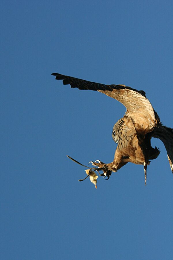 При случае филин охотится и на других птиц, в том числе мелких воробьиных, дрофиных, рябковых, попугаевых, кукушковых, стрижиных, дятловых и удодов.
