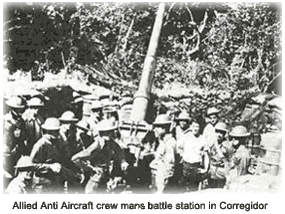 На Коррехидоре находились позиции американских береговых батарей, защищавших вход в Манильский залив. На острове были расположены 59-й и 91-й артиллерийские полки береговой обороны (последний был укомплектован военнослужащими филиппинской армии) и 60-й зенитно-артиллерийский полк. Американская артиллерия в то время состояла из устаревших стационарных батарей, содержавших неподвижные мортиры и артиллерийские орудия. Они были легко уничтожены японскими бомбардировщиками, которые имели возможность сбрасывать бомбы с большой высоты, оставаясь недосягаемыми для зенитных батарей защитников острова.