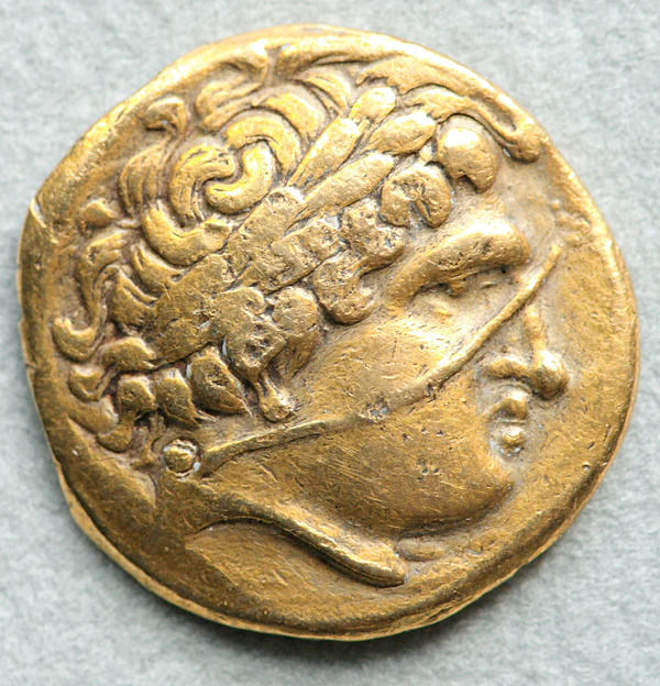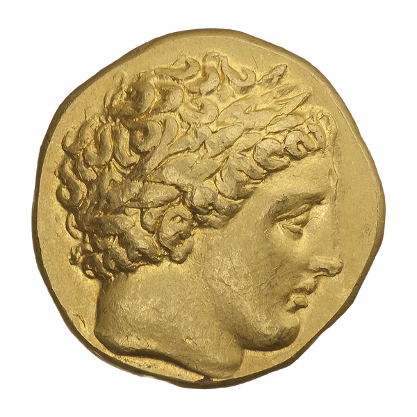 Первоначально выпущенные между 355 и 347 до нашей эры,[3] монеты несли на себе портрет Аполлона на аверсе и греческую колесницу, ведомую двумя лошадьми, на реверсе[4]. Они имели ценность одного золотого статера[3]. При первом выпуске Аполлон был изображён с длинными волосами, но позднее дизайн был изменён, и длина волос стала короче[5].